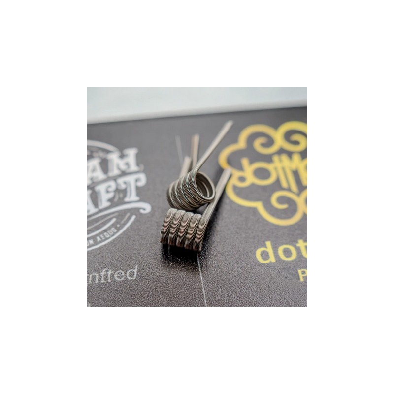 W całości ręcznie wykonane.2x27 Ni80/1x38 Ni80.5 zwojów na Ø2,5 mm.0,32 ohm: Używaj od 25 do 35 watów.Podczas docierania, pamiętaj o obniżeniu mocy, aby uniknąć wybielenia cewek.Sprzedawane w opakowaniach po 2 sztuki.